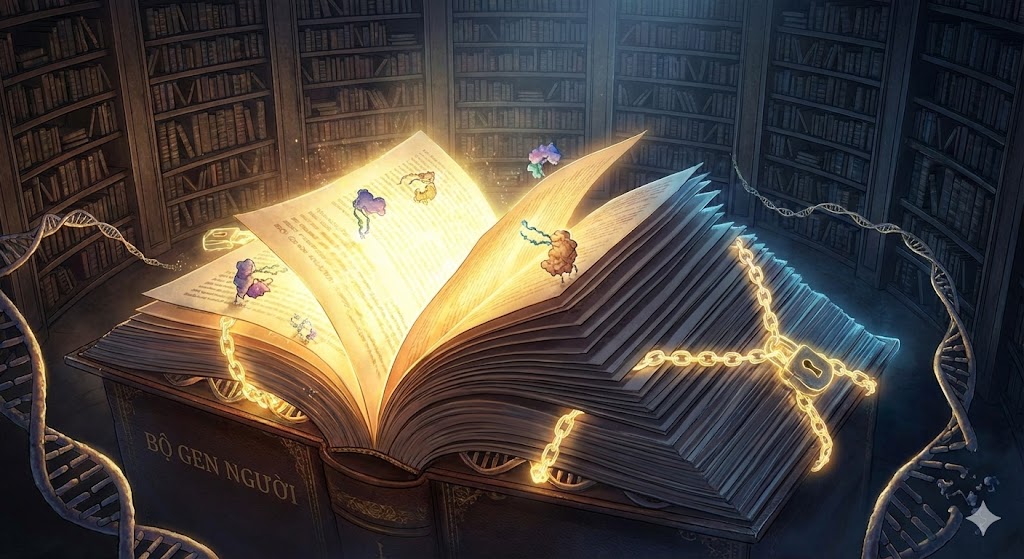 Cơ chế biểu sinh: Đây là chiếc khóa bảo mật. Nó không đổi DNA nhưng quyết định gen nào bị khóa chặt, giúp tế bào giữ vững "bản sắc" của mình suốt đời.