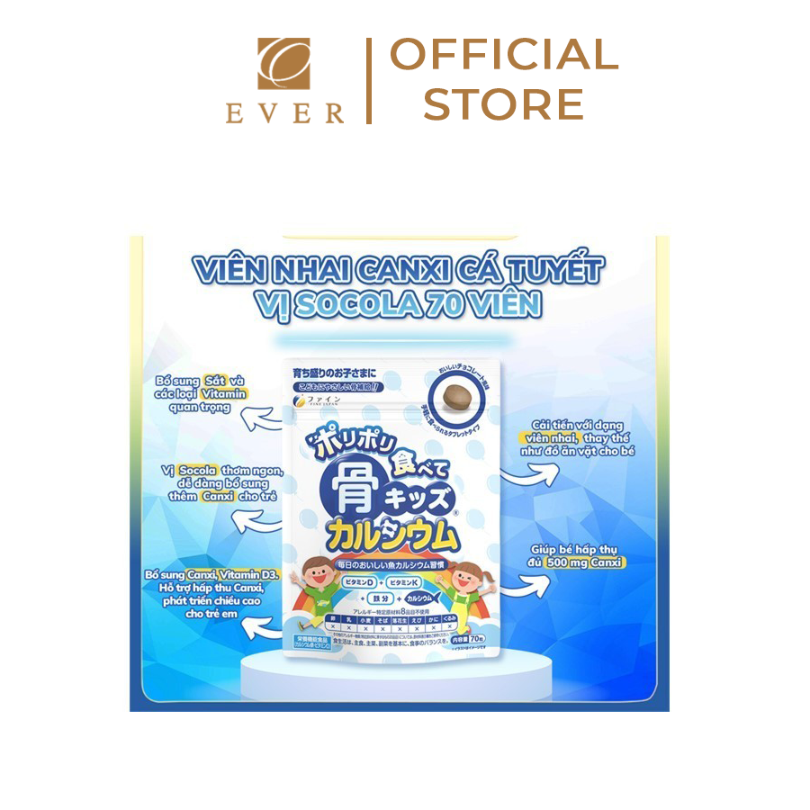 Canxi cá tuyết dạng viên vị socola từ FINE JAPAN là lựa chọn hấp dẫn để bổ sung canxi cho cơ thể. Với hương vị socola thơm ngon, sản phẩm giúp việc bổ sung canxi trở nên thú vị hơn, đặc biệt phù hợp cho cả trẻ em và người lớn. Viên uống tiện lợi, dễ dàng mang theo và sử dụng mọi lúc mọi nơi, hỗ trợ tăng cường sức khỏe xương khớp và sự phát triển toàn diện.