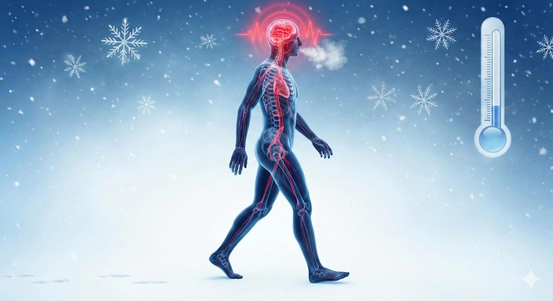 1️⃣ Trời lạnh làm mạch máu co lại đột ngột Khi nhiệt độ giảm, cơ thể phản xạ tự nhiên bằng cách co mạch máu để giữ nhiệt, khiến lòng mạch hẹp lại, máu lưu thông kém hơn, áp lực tăng lên, tim phải hoạt động mạnh hơn để bơm máu. Θ Với người có mạch máu đã xơ vữa, kém đàn hồi, chỉ một cơn co mạch đột ngột cũng có thể làm tắc mạch não hoặc vỡ mạch máu – dẫn đến đột quỵ.
